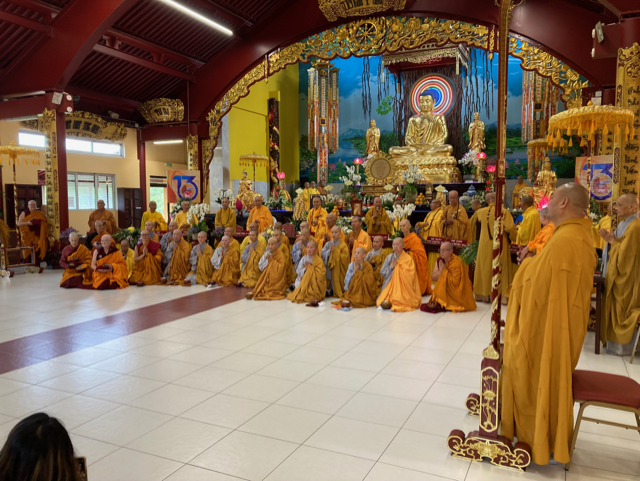 Am 18. August 2023 wurden in der Pagode Khanh-Anh acht Nonnen der tibetischen Tradition zu Bikshunis geweiht. Die vietnamesische Pagode liegt im Ort Envry bei Paris und ist die größte Europas. Der hochehrwürdige Thich Nhu Dien, der Gründerabt der Pagode Vien Giac in Hannover, hatte die Nonnen eingeladen. In der tibetischen Tradition gibt es die volle Ordination für Frauen nicht (mehr), tibetische Nonnen können sie aber in der von den Vietnamesen und Chinesen gehaltenen Dharmagupta-Tradition nehmen. Da das eine seltene und kostbare Gelegenheit ist, reisten drei der acht Nonnen sogar aus Australien und Südamerika an! Die anderen kamen aus Spanien, Italien und Frankreich. Die Gastfreundschaft der vietnamesischen Gemeinde sucht ihresgleichen, die Nonnen wurden vom Flughafen abgeholt, dorthin zurückgebracht, verpflegt und zu guter Letzt auch noch mit großzügigen Spenden bedacht. Die ehrwürdige Chan Dan war aus Frankfurt angereist, um zu übersetzen und bei Problemen und Fragen hilfreich zur Seite zu stehen. Neben der Bedeutung für den Nonnenorden war es auch ein Ereignis, bei dem es zu schönen Kontakten zwischen Nonnen asiatischer Herkunft und ihren westlichen Schwestern kam. Vielen herzlichen Dank an unsere vietnamesischen Freunde!