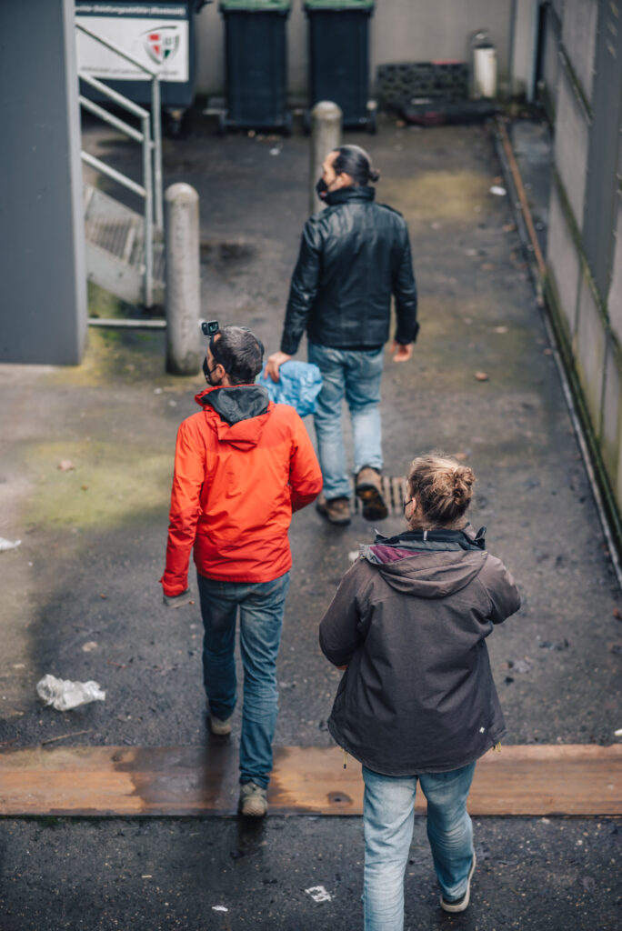 „Okay, ihr könnt los.“ Das Kamerateam des SWR auf der anderen Straßenseite schaut uns erwartungsvoll an. Mit der mobilen Go-Pro-Kamera auf dem Kopf und einer Plastiktasche in der Hand steige ich gemeinsam mit Benchi, genau wie ich 42 Jahre alt und ebenfalls Vater, über die Mauer und hinunter zu den Containern des Supermarktes am Rande von Freiburg. Unten angekommen nehmen wir uns die Mülltonnen vor und durchsuchen sie nach brauchbaren Lebensmitteln, etwa den Joghurt mit Zimtgeschmack, der jetzt, Ende Januar, natürlich aussortiert wird.