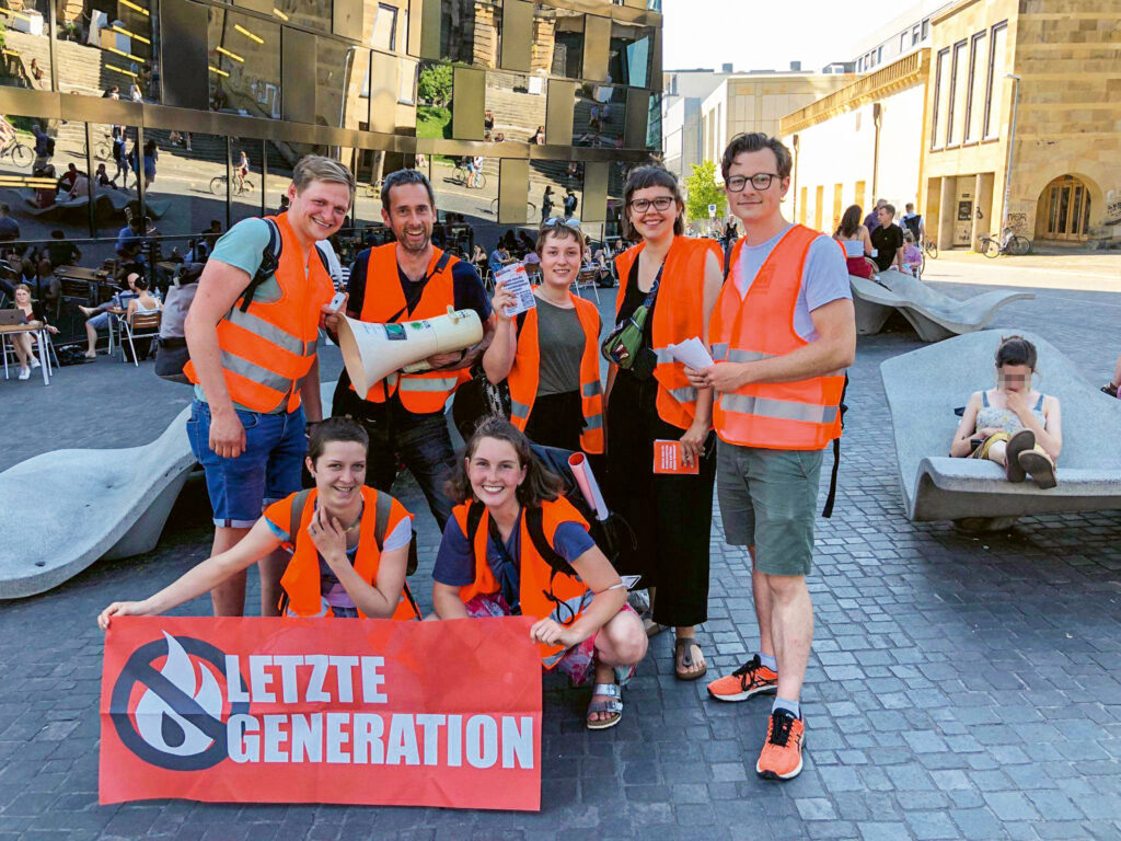 Nach meinem Studium beginne ich, international als Berater für Solarenergie zu arbeiten und zum Beispiel mitzuhelfen, dass in Bangladesch mehr Solarpanele auf die Dächer kommen. Aber die Krise kommt näher: verheerende Waldbrände in Europa und dann die Ahrtalflut 2021. Als mir klar wird, dass wir noch viel schneller handeln müssen und die Katastrophen nicht nur unsere Kinder und Enkel, sondern auch uns selbst noch betreffen werden, suche ich nach noch konkreteren Wegen, der Klimakrise hier und heute zu begegnen – und besuche so Ende 2021 den ersten Vortrag der Letzten Generation in Freiburg. Gut einen Monat später folgt dann die Episode mit dem Supermarkt.