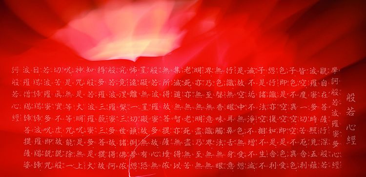 …Form ist Leerheit. Leerheit ist Form. Leerheit ist nichts anderes als Form. Form ist nichts anderes als Leerheit. Ebenso sind Gefühl, Unterscheidung, Wirkkräfte und Bewusstsein leer. Daher, Śāriputra, sind sämtliche Phänomene Leerheit, ohne Merkmale, ohne Entstehen, ohne Vergehen, ohne Makel, ohne Freiheit von Makel, ohne Abnahme und ohne Zunahme. Daher, Śāriputra, existiert in der Leerheit keine Form, kein Gefühl, keine Unterscheidung, keine Wirkkraft, kein Bewusstsein; kein Auge, kein Ohr, keine Nase, keine Zunge, kein Körper, kein Geist; keine Form, kein Klang, kein Geruch, kein Geschmack, nichts Spürbares, keine Phänomene; kein Augen-Dhātu bis hin zum Geist-Dhātu, kein Phänomene-Dhātu, kein Geistbewusstseins-Dhātu; keine Unwissenheit, kein Enden der Unwissenheit bis hin zu keinem Altern und Tod und keinem Enden von Altern und Tod; kein Leiden, kein Ursprung des Leidens, keine Beendigung, kein Pfad, keine Weisheit, kein Erlangen und kein Nicht-Erlangen …