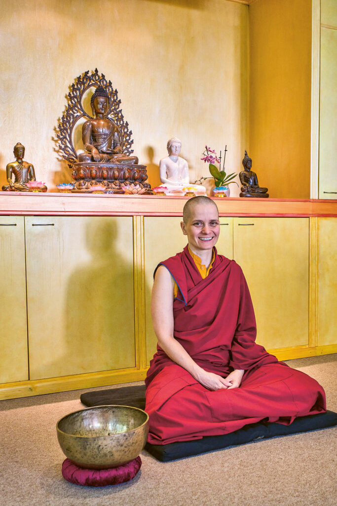 Mein Ordensweg begann mit einer zehnjährigen Nonnenausbildung in der Sravasti-Abtei im US-amerikanischen Newport, wo wir in der tibetischen Tradition Seiner Heiligkeit des Dalai Lama praktizieren. Mit der Anagarika-Zeremonie nahm ich für ungefähr ein Jahr die acht Gelübde, um mich auf die Novizinnenordination vorzubereiten. Danach konnte ich als Anwärterin formell bei meiner Äbtissin, der Ehrwürdigen Thubten Chodron, mit drei Niederwerfungen die Sramanerika- und Shiksamana-Ordination, also die Novizinnen- und Trainingsordination, erbitten.