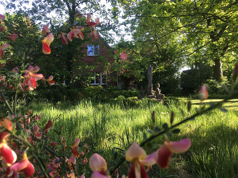 Zurück zu Hause fiel es mir schwer, mich wieder in das normale Alltags- und Berufsleben einzufinden. Die nächsten fünf Jahre meditierte ich viel und erfüllte meine weltlichen Pflichten. Wir hatten in etwas abgeschiedener Lage einen großen Naturgarten, in dem ich viel Zeit verbrachte. Ich spürte eine starke Kreativität, malte viel, und gleichzeitig gab es in mir diesen reflektierenden, suchenden Geist: Was ist das Leben? Woher kommt all das Leid, das einem Mensch widerfährt? Eines Tages bin ich aus dem Garten nicht mehr nach Hause, sondern einfach dortgeblieben, um zu praktizieren, viele Monate lang. Meine Eltern sorgten sich, aber mein Mann und eine Freundin verstanden glücklicherweise, worum es ging, und versorgten mich mit Nahrung.