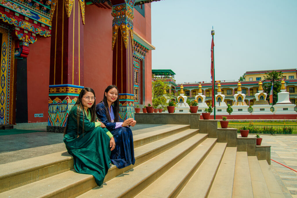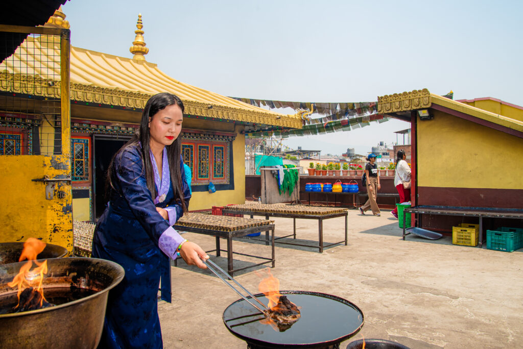 In alldem treten die beiden Schwestern mit einer heiteren und sanften Gelassenheit auf, immer wieder aber auch erfrischend selbstbewusst und schlagfertig. Das Malen der Thangkas sei für sie wie eine Meditation, erzählen sie mir. Ein entspannter Geisteszustand sei eine der Voraussetzungen für gutes Gelingen. Jeden Thangka beginnen die Schwestern mit einer puja, einer Ehrerweisung, für die jeweilige Gottheit. „Wirkliche buddhistische Praxis bedeutet, zum Wohle aller Lebewesen aktiv zu werden“, sagen sie aus tiefstem Herzen. Den Straßenhunden am Fluss Bagmati haben sie mit regelmäßigen Fütterungen ihre Fürsorge zukommen lassen. Und als Vajrayana-Praktizierende helfen sie in einem befreundeten Theravada-Nonnenkloster bei Feierlichkeiten und anderen Anlässen in der Küche aus. Der über 90-jährigen leitenden Nonne des Klosters standen sie in ihren letzten Lebenstagen und -nächten tatkräftig als ungelernte Pflegekräfte bei.