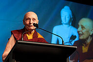 Sakyadhita heißt wörtlich „Töchter des Buddha“. Die internationale Vereinigung buddhistischer Frauen setzt sich seit 1987 für Frauenrechte, die Zusammenarbeit und das Wohl buddhistischer Frauen ein. Alle zwei Jahre gibt es eine große Konferenz. 2019 fand sie unter dem Motto „Neue Horizonte im Buddhismus“ in den australischen Blue Mountains statt. Ayya Yeshe, Nonne in der tibetisch-buddhistischen Tradition, Dharmalehrerin, Frauenrechtsaktivistin und Sozialarbeiterin stellt kritische Fragen.