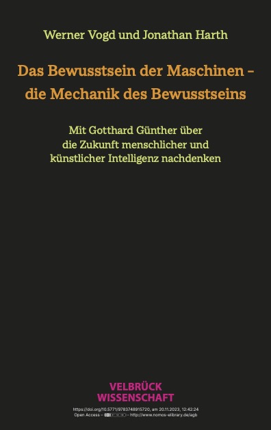 Werner Vogd und Jonathan Harth: „Das Bewusstsein der Maschinen – die Mechanik des Bewusstseins. Mit Gotthard Günther über die Zukunft menschlicher und künstlicher Intelligenz nachdenken“, Velbrück Verlag 2023, open access, freier Download: tinyurl.com/ki-velbrueck-vogd-harth
