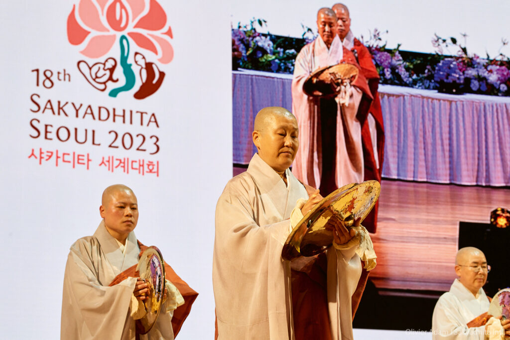 Doch wie lässt sich den aktuellen Herausforderungen mit einem klareren Kopf begegnen, mit offenem Herzen und mehr Gleichmut? Diese Frage stellten sich rund dreitausend ordinierte und nicht ordinierte buddhistische Frauen auf dem jüngsten Kongress der buddhistischen Frauenorganisation Sakyadhita International. Alle zwei Jahre lädt sie zu einem internationalen Treffen ein. 2023 fand es im südkoreanischen Seoul statt; auch einige Männer waren unter den Teilnehmenden.
