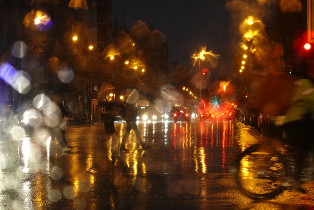 Hilfreich ist die Bereitschaft, für kleine Momente dem Sehen Vorrang zu geben, in die Entdeckungsfreude einzutauchen. Die Haare der Person vor uns an der Supermarktkasse zu betrachten, das Licht an Gleis 9 Köln Messe/Deutz, den Regen auf der Windschutzscheibe gefärbt von den Rücklichtern im Stau, die Reflektion auf einer Fassade, bevor ich das Gebäude betrete.