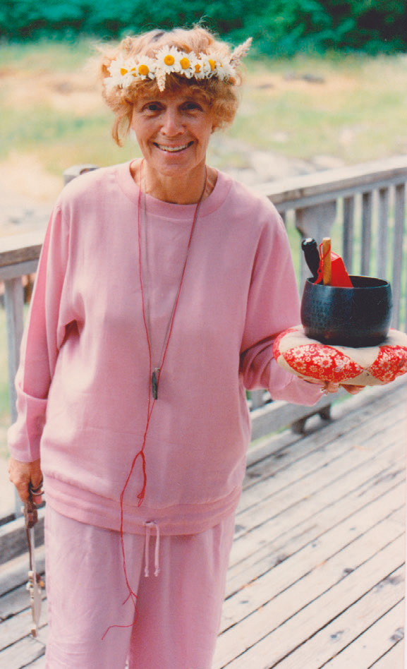 Ruth konnte erfrischend spontan sein, entwickelte ihre Übungsanweisungen aus dem Moment heraus. Für die SchülerInnen bedeutete es, dass sie sich nie ganz sicher sein konnten, wie lange eine Meditation unter Ruths Leitung dauern würde. War eine Stunde angesagt, konnten auch 90 Minuten draus werden – oder 20. So oder so hieß es: Erwartungen loslassen, sich nicht identifizieren mit den aufsteigenden Bewertungen oder Widerständen, immer wieder offen sein für den Augenblick. Ruth hatte auch eine ganz besondere Beziehung zu Tieren, die das auch spürten und Ruths Nähe suchten. Ich erinnere mich an Meditationsstunden, die ich übend in Ruths Retreats verbrachte, wo mich plötzlich eine kleine Hundeschnauze beschnüffelte – Ruth hatte einen ihrer sechs Dackel im Schlepptau mit ins Zendo genommen. Die unverstellte Neugier des kleinen Hundes, dass er im Zendo einfach seiner Wege ging – mich hat das so erheitert und entkrampft! Die Suche nach der Erleuchtung wird ja viel zu schnell zur ernsten Angelegenheit… Und lächelnd höre ich jetzt in meiner Erinnerung Ruths Stimme: „Tara, hierher, Körbchen, artig!“ Die Lehrerin, die alle Geschöpfe unterrichtete und dafür die Ebenen zu wechseln wusste und die richtigen Worte fand. (FL)