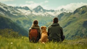 Nachdem sie die erste Hälfte des Weges hinter sich gebracht hatten, wurde es – sehr zu Sams Vergnügen – friedlich und still. Doch genoss er auch die Aussicht, schließlich hatte er Augen im Kopf. Vi ließ derweil den Blick in die Ferne schweifen und schoss bereits die ersten Fotos. Nicht jedoch, ohne sich ebenfalls an der schönen Harmonie des Augenblicks zu erfreuen. Metta wedelte heftig mit dem Schwanz, weil sie bereits auf halber Strecke so viel Liebe und Güte empfand. Anapana schließlich atmete ganz ruhig – die Luft war hier so gesund und köstlich, dass sie dem Hund wie von selbst in die Nase strömte. Doch genossen beide Tiere auch den Frieden und die Aussicht.