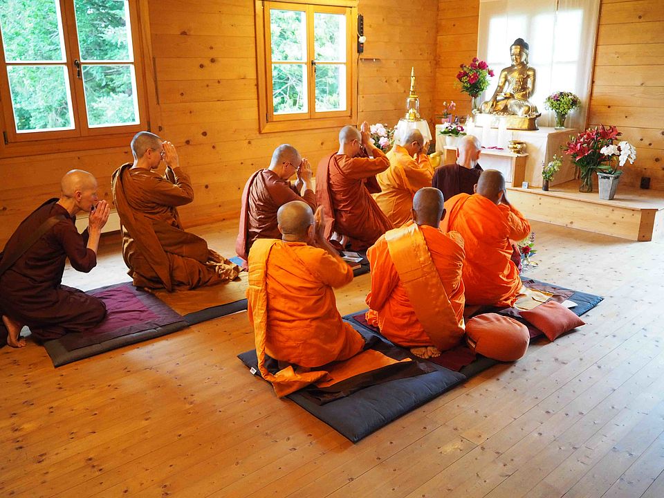 Was heute sicher anders ist als zur Zeit des Buddha, vor allem in der westlichen Welt, ist unsere Individualität. Hier ist eine gute Balance zwischen Struktur und Freiräumen sinnvoll und eine Ausgewogenheit von Meditation und Arbeit – „Ora et labora“ – für unsere doch sehr kopflastige Gesellschaft. Möglich ist das alles nur, wenn es von gegenseitigem Respekt und Wertschätzung getragen ist. Wenn das Üben aller auf das Entfalten eines o enen, weiten, mitfühlenden und liebevollen Herzens ausgerichtet ist, wird ein Kloster zu einem wunderbaren Rückzugsort. Und es kann dadurch auch ein Vorbild für eine einfachere, natürlichere und sozialere Gesellschaft sowie ein Beitrag zu ihr werden.