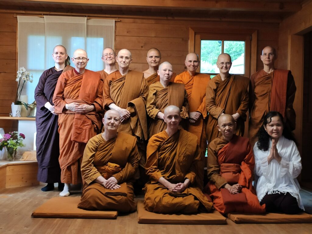Schon die erste Bhikkhuni-Ordination in der Theravada-Tradition in Deutschland – und sogar in ganz Europa – fand am 21. Juni 2015 in der Anenja Vihara statt. Acht Jahre später haben hier gleich drei Samaneris die Weihe zur Bhikkhuni erhalten. Zur Ordination von Samaneri Rakkhita, Samaneri Saccika und Samaneri Jutindhara voll ordinierte Nonnen und Mönche mit der entsprechend notwendigen Anzahl an Ordinationsjahren aus Deutschland, den USA, Sri Lanka und Tschechien einlud. Wie im Vinaya, den Ordensregeln, festgelegt, wurde eine duale Ordination durchgeführt. Zuerst durch die Bhikkhuni-Sangha in der Sima in der Anenja Vihara und danach durch den Bhikkhu-Sangha in der extra errichteten Sima in einer Jurte im Garten der Anenja Vihara. Eine Sima ist ein abgegrenzter und gemäß den Ordensregeln wichtigen Sangha-Handlungen gewidmeter Bereich.
