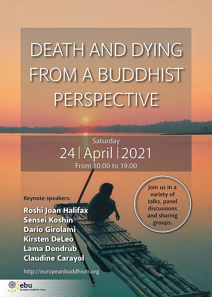 Am Samstag, dem 24. April 2021, veranstaltet die Europäischen Buddhistischen Union von 10 bis 19 Uhr die Online-Konferenz „Death And Dying From A Buddhist Perspective“ mit einer Vielzahl von Vorträgen, Podiumsdiskussionen und Austauschgruppen. Veranstaltungssprache ist Englisch mit Simultanübersetzungen in Französisch, Spanisch und Italienisch.