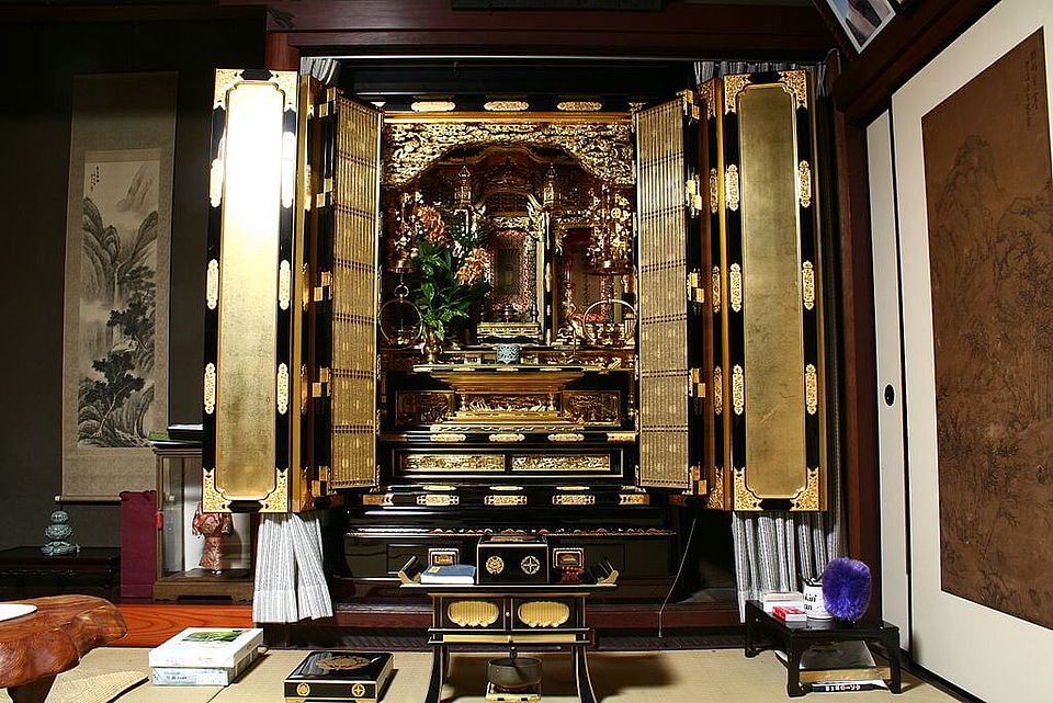 Die meisten japanischen Häuser, in denen ein naher Verwandter gestorben ist, haben einen Familienaltar, der als Butsudan bekannt ist. An diesem führen Familienmitglieder Rituale für die Verstorbenen durch, wie z.B. Gebete, das Verbrennen von Weihrauch, Gaben von Nahrungsmitteln und in manchen Sekten auch Gesänge. Jedes Familienmitglied kann diese Rituale durchführen, aber meistens übernimmt eine Person des Haushalts, oft die älteste Frau, diese als regelmäßige Aufgabe. Die Häufigkeit dieser Rituale variiert von Haushalt zu Haushalt enorm. In einigen Haushalten werden diese Rituale täglich, in anderen monatlich, in wieder anderen nur zu wichtigen Zeiten im Jahresverlauf durchgeführt, wie z.B. zur Tagundnachtgleiche oder zu Neujahr.